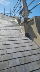 Work has been carried out to remedy water ingress on the corner of our historic Sanctuary building which has caused damage to the brickwork and interior plaster. This entailed investigation of problem, removal of vegetation, refixing of slates and flashing, works to false windows and general refurbishment.