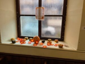 On Tuesday 21st October children from the Old Town First School came to see the windows decorated for Harvest.
